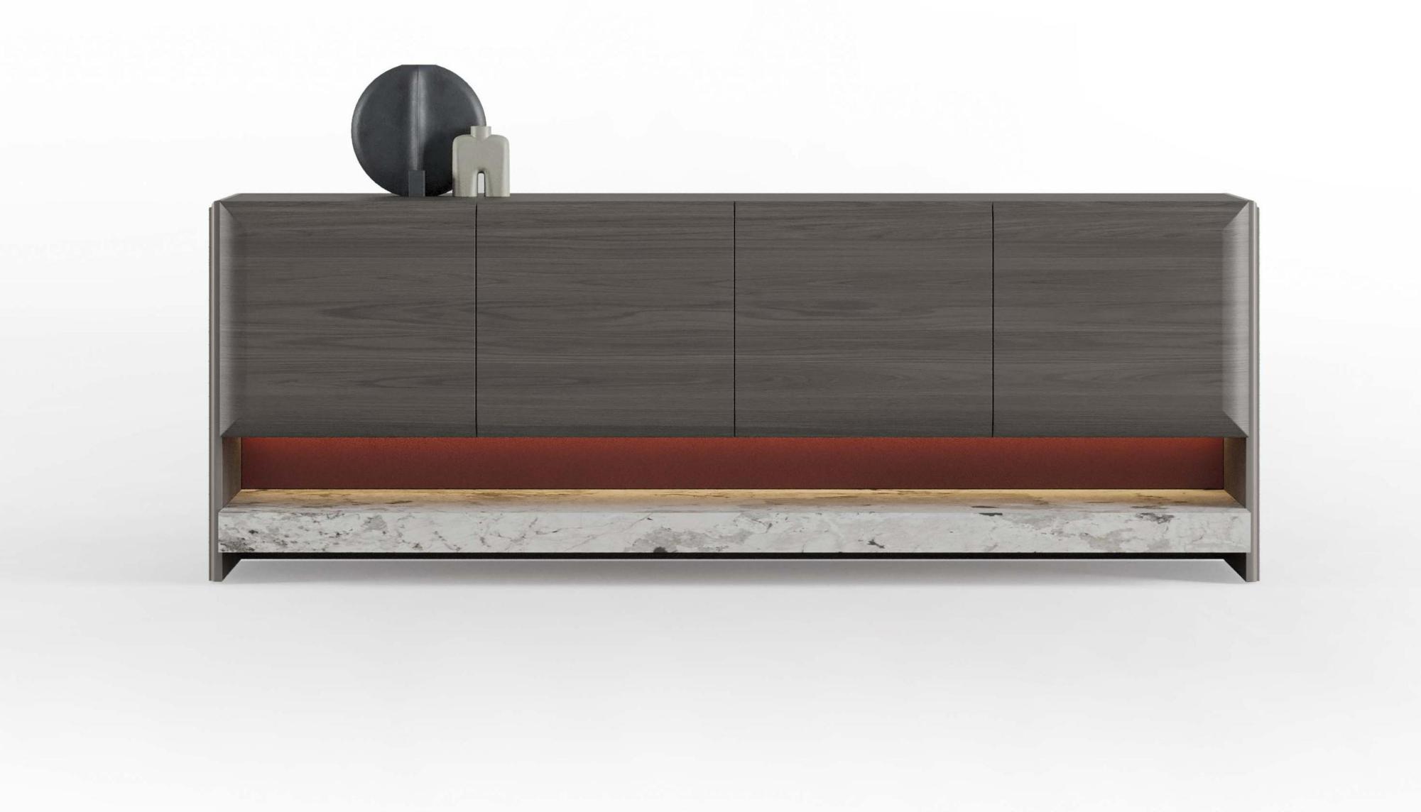 Тумба ТВ CAPRIA, с подсветкой, низ дерево, двери откидные