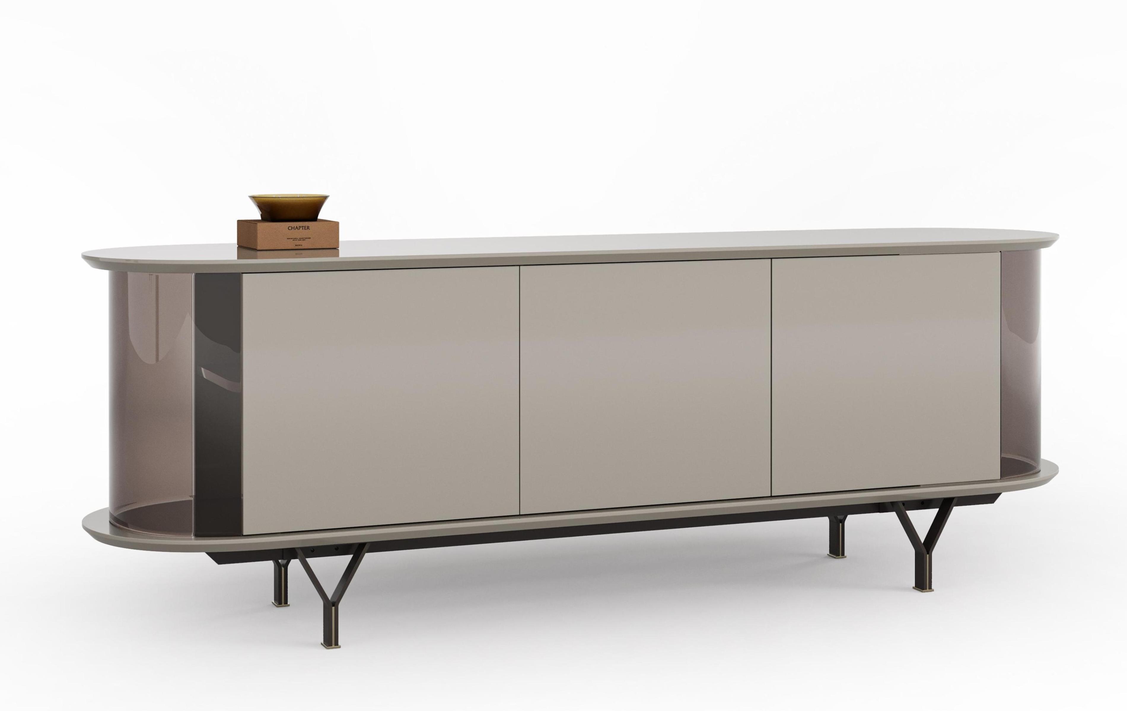 Особое внимание заслуживает буфет коллекции Rinda. Его закруглённые стеклянные боковины придают конструкции лёгкость и визуальное расширение пространства. Буфет покрыт краской итальянского производства Sirca, что обеспечивает высокое качество и долговечность покрытия, а также придаёт мебели роскошный и благородный вид. Дополнительно, немецкая фурнитура Hettich гарантирует плавность и надёжность работы всех механизмов, обеспечивая комфортное и бесшумное использование.